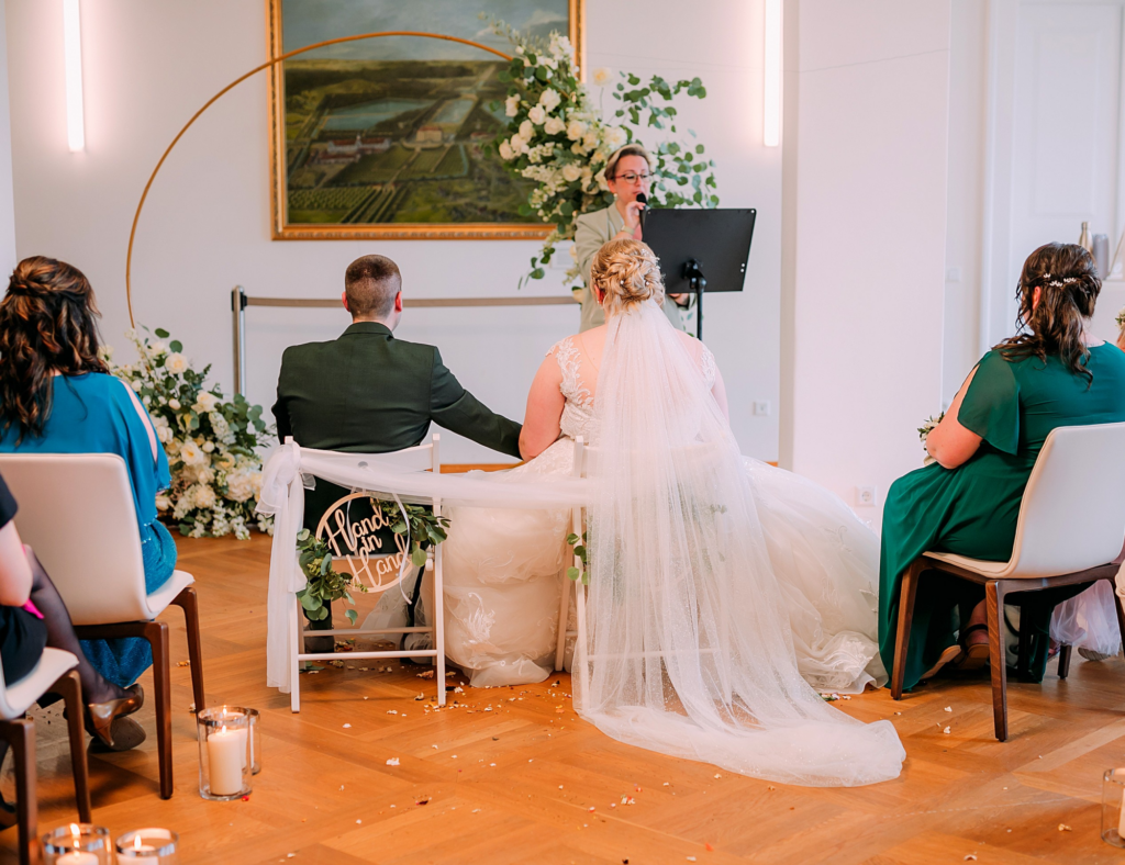 Geplant war eine freie Trauung unter freiem Himmel. Die Kulisse war vorbereitet, die Atmosphäre perfekt, alles wartete auf diesen besonderen Moment. Doch kurz bevor es losgehen sollte, zog eine dunkle Wolke auf und machte klar: Heute braucht es Flexibilität. Innerhalb von nur 20 Minuten wurde umgebaut, neu gedacht, neu arrangiert. Ein Kraftakt für alle Beteiligten – inklusive mir. Als Traurednerin habe ich selbstverständlich mit angepackt, besonders beim Traubogen, der so speziell konstruiert war, dass gleich mehrere helfende Hände nötig waren, um ihn an seinen neuen Platz zu bringen.