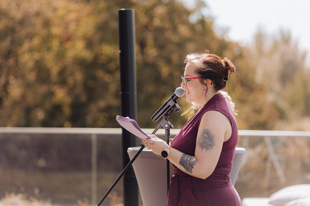 Im März 2020 kam die Diagnose Brustkrebs – genau im ersten Lockdown. Plötzlich war alles anders. Ich machte einen Onlinekurs speziell für freie Traurednerinnen und lernte, wie man echte Emotionen in Worte fasst, wie man mit Humor und Herz vor hunderten Menschen steht. Während der Chemotherapie schrieb ich meine ersten Traureden vom Sofa aus, mit Laptop auf dem Schoß und Infusion im Arm. Es klingt verrückt, aber genau diese Monate haben mir gezeigt, wofür ich brenne.